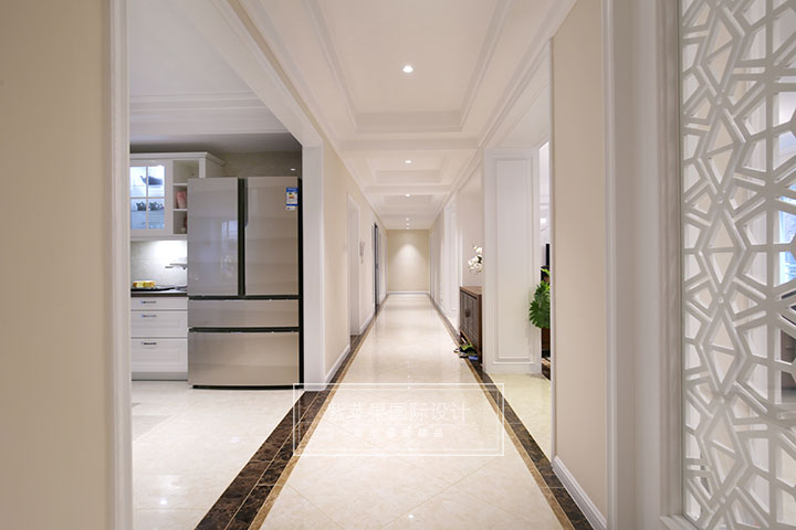 设计师用理性的眼光,将居室内人、物、空间进行完美协调,一把造型雅致的中式风格椅子,一副水墨画,勾勒出主人的闲情逸致,传达出温馨品味的空间内涵。